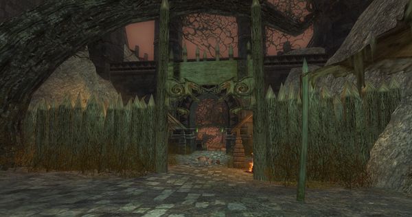 The Warg-pens of Dol Guldur is a World Instance, also referred to as Draugdegil, is located just behind the gate at Fennas Guldur. This is the breeding-ground for the beasts where the Warg-matron Kranklob rests, tending her foul brood in the service of the Dark Lord.