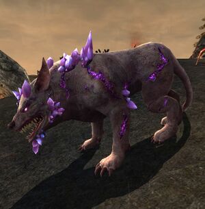 - A different visual appearance for your Warg Stalker: a grey-coloured Warg with purple crystals growing aroun its head and face.