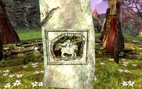 - For a full description of the stone carvings and translation of the memorial see Eorl's Hallow located in The Wold. [45.6S, 51.2W].