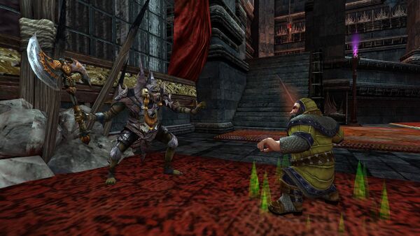 Fight your way thru the halls and chambers. Each chamber is barricaded with a massive grate that will open once you capture the flag. As you take some of the chambers you will get some help in defeating counter-attacks in the form of the Golden Host elves Sigileth, Ellunen, Cúcheron, Ningloril that traveled with you thru Mirkwood.